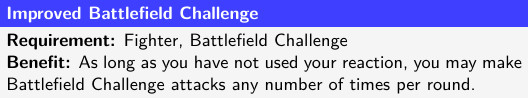 Improved Battlefield Challenge will let Ragnvald make multiple Battlefield Challenge attacks per round, where he could normally only make one. But, it will require that he forgo using his reaction, which he could normally use for Walk it Off.