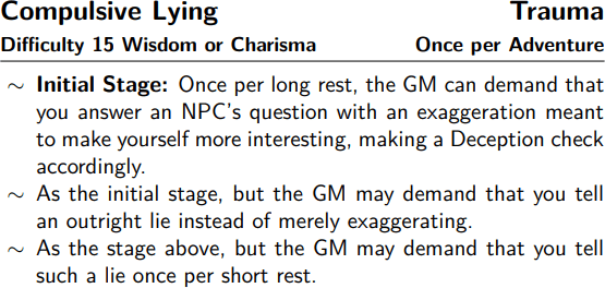 This is not to say that there are not costs to changing clans. Dwarves are expected to pay for the training they receive as part of an apprenticeship, and if they or their family do not have the money to pay for this outright, they incur a debt to the clan in which they apprentice. There are other ways to incur a debt to one’s clan, and changing clans with such a debt on the books requires that someone–the dwarf themselves, their family, or the clan adopting them–pay it off before they can leave. The most traditional clans can be utterly ruthless about this, and often the only way for a dwarf with debts but no prospects to leave is for them to flee the Federation entirely. More commonly, though, a dwarf changing clans merely has their debt purchased by their new clan, if it isn’t paid off entirely by their friends and relations as a parting gift.
