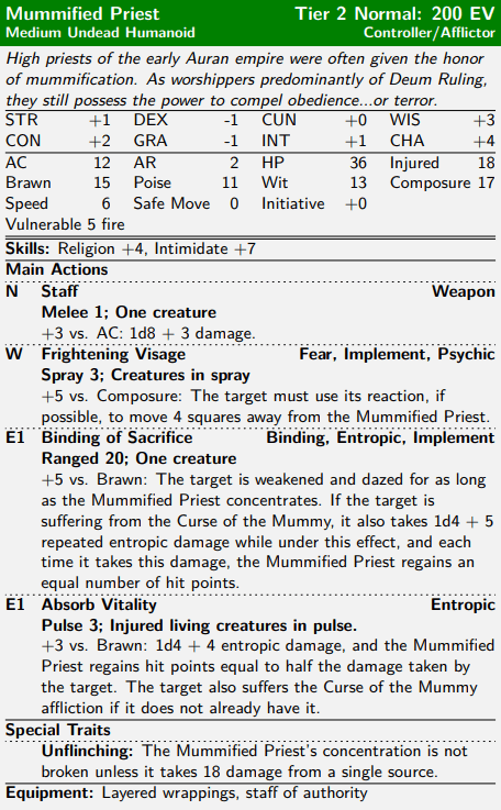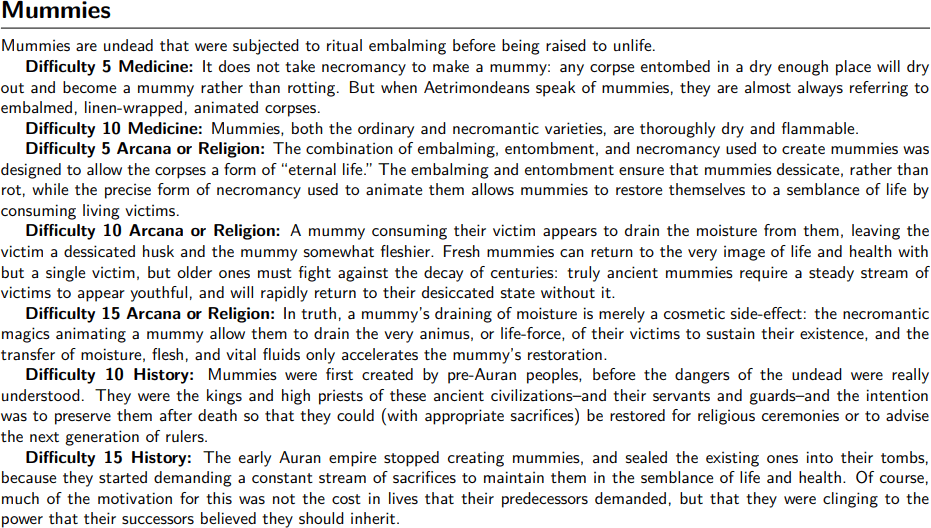 Federation dwarves mostly worship the same Pantheon as Aetrimonde’s other societies, performing the same rites and believing in the same afterlife. But due to their unique cultural baggage, dwarves are far more concerned with being remembered by the living once they have passed on: this is expressed through what is essentially a second religion practiced in parallel to ordinary worship. Every clan supports a Stonekeeper, who is equal parts priest, historian, and genealogist. The Stonekeepers keep records of every clan member’s notable acts—for good or for ill—and, upon a dwarf’s death, their clan’s Stonekeeper constructs for them a fitting stone monument, carved with a summary of their greatest achievements so that they can be remembered for posterity.